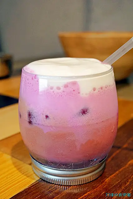 照片看不太出來它的拉花其實是粉紅色的,原來是在奶中加入火龍果汁而成,口感香醇順口,別有一番趣味。