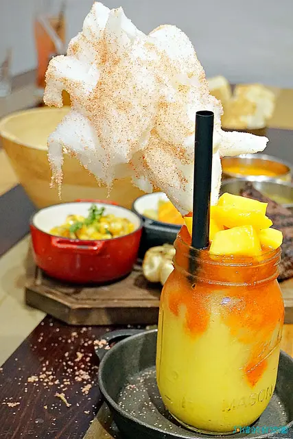 為墨西哥傳統冷飲 Mangonada,將芒果冰沙與混合以墨西哥紅椒粉、Tabasco、鹽及檸檬汁製成之的辣椒冰沙,綴以新鮮水果及辣椒棉花糖,艷麗色彩洋溢墨西哥熱情,入口酸甜微辣,一掃酷夏的炙熱。