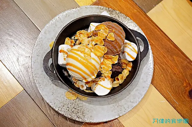 整盤甜點超多料,還有兩球冰淇淋及四顆烤棉花糖,再加一些穀物麥片,這樣180元其實不算貴