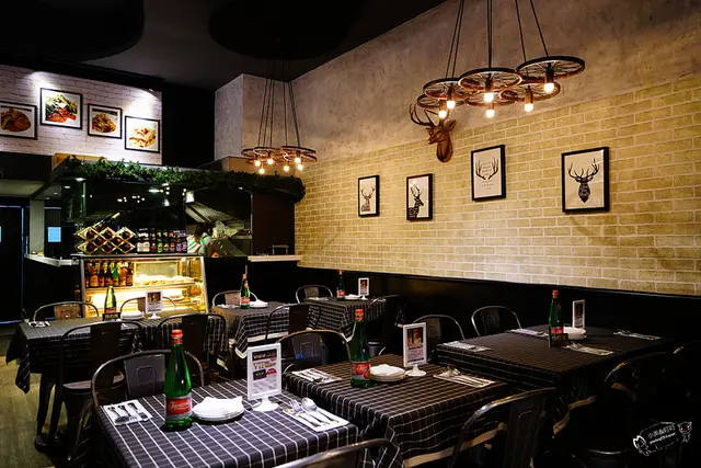 燈泡還選用了鎢絲吊燈、牆上的那顆鹿頭的點綴更是有趣。