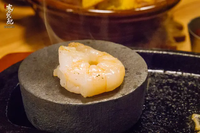 雖說蝦仁已經烹煮熟了,但還是可以放上石板上給它烘烤一下啦!