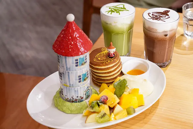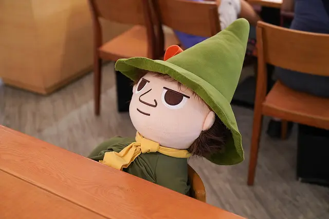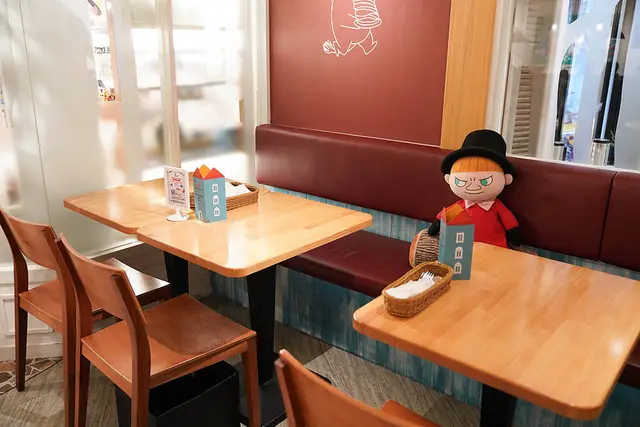 如剛才提到每個位置都有嚕嚕米家族的成員,有的時候服務人員還會幫玩偶換座位,上一秒阿金下一秒可能就是嚕嚕米爸爸,一種玩偶輪流坐檯的概念!我們今天跟阿金、小不點、魯魯咪爸爸、嚕嚕米都有合照還有陪吃!真的太療癒了。
