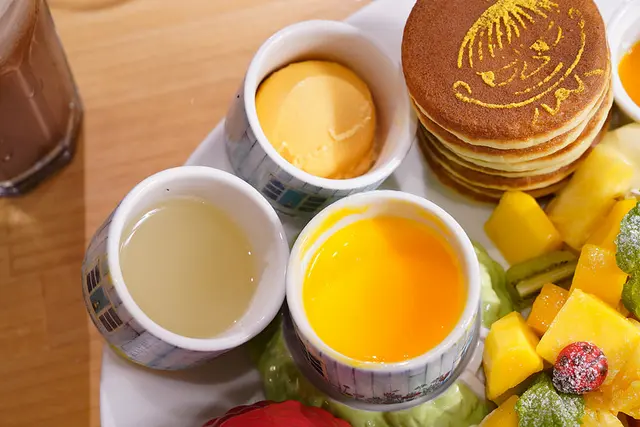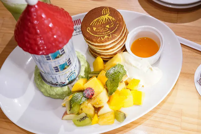 這個鬆餅還可以任選一款公仔帶回家,二話不說我們挑了小不點!還是陶瓷的哦!原來目前是台灣獨家的期間限定菜單在7到9月都有芒果季,推出了三款「嚕嚕米谷甜蜜聚會特製芒果塔」、「嚕嚕米媽媽手做芒果千層蛋糕」、「可兒最愛芒果金磚聖代」,不過我們一款都沒點,真的太有趣,但是這個鬆餅水果也換成了芒果哦!還有蘋果、鳳梨!