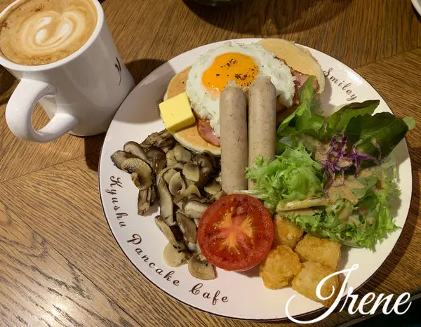 有炒菇、香腸、薯塊、太陽蛋、培根、沙拉