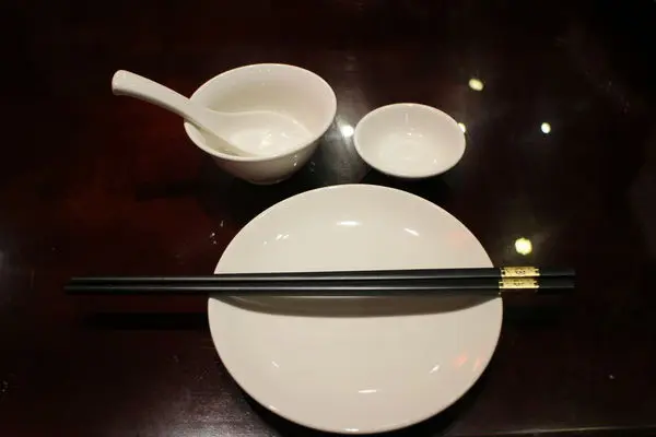 每人前面都有一組碗盤,四人為一桌(單位)。我們今天嚐的是3~4人的免費體驗。