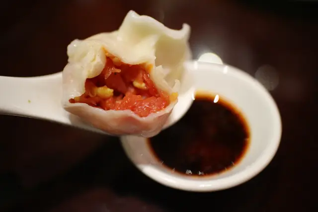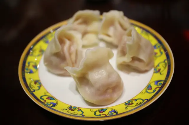 每顆雖然要價11元,但是內餡豐滿,蝦仁稍嫌脆了。另外老滿餃子跟老滿餡餅內餡差不多,所以一次點一樣就好,不然重複性高。餃子本身有調味,建議吃原味,也可以蘸旁邊的麻辣椒醬。
