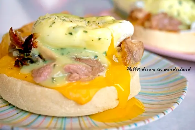 淋上了荷蘭醬汁外野撒了一些起司粉,賣相頗佳,比爸都忍不住直勾勾盯著它看