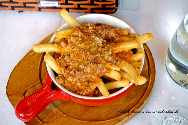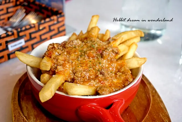 鹹香的肉醬薯條不用再額外沾醬,裏頭還有添加起司所以口味上絕對是夠重