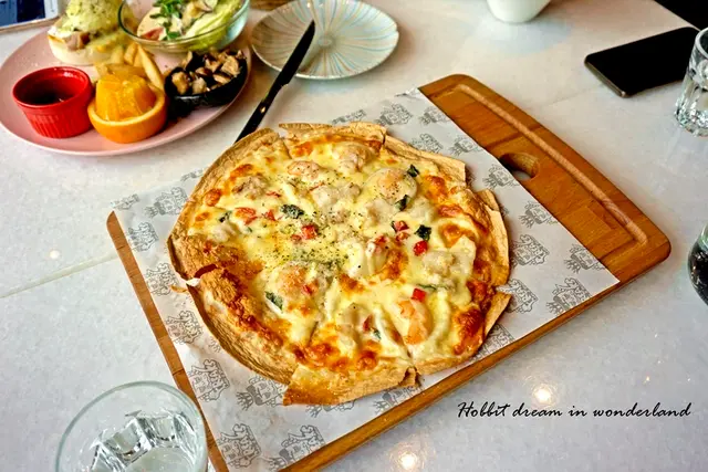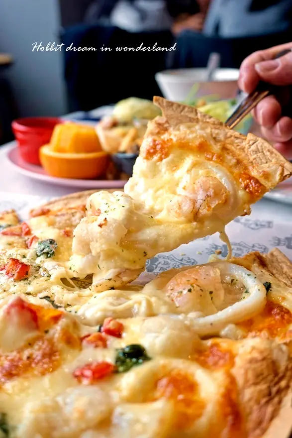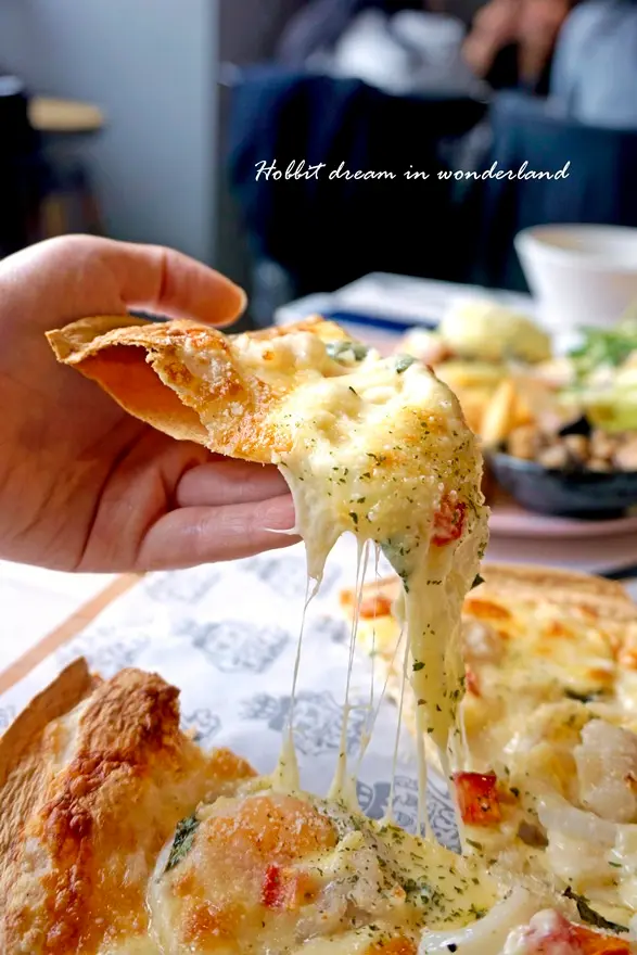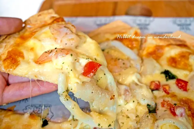 外圈酥脆,裏頭的起司和海鮮濃郁鮮甜,起司緊緊的扒附在海鮮跟餅皮上,趁熱吃真的很好吃