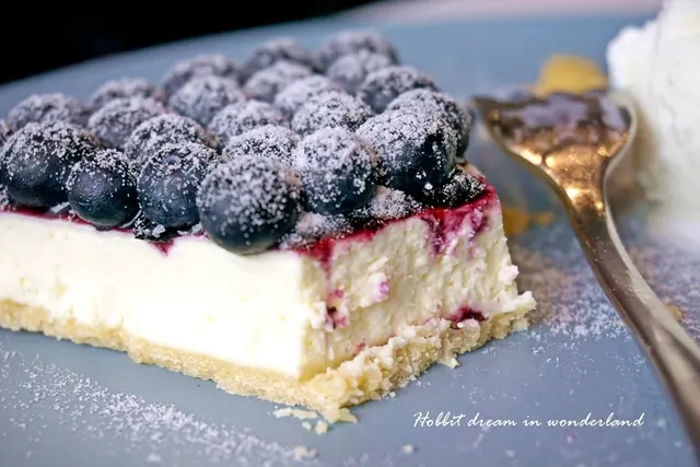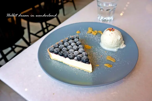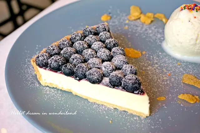 不過這乳酪塔先刷上一層藍莓醬後在擺放上漂亮的藍莓,藍莓醬的甜味和新鮮藍莓的酸度互相搭配中和