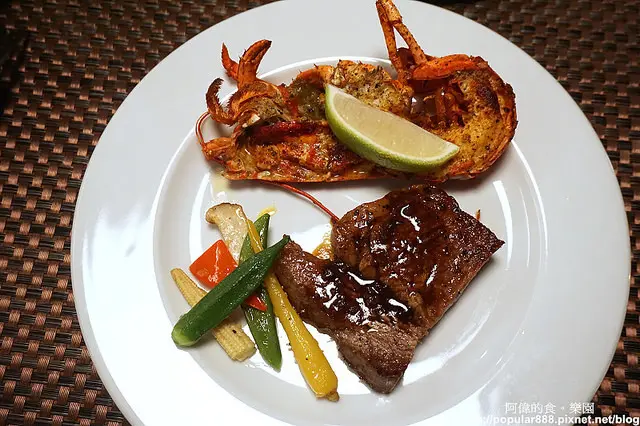 這盤主菜有Prime級的美國肋眼牛,以及半隻大龍蝦,視覺效果就很厲害。