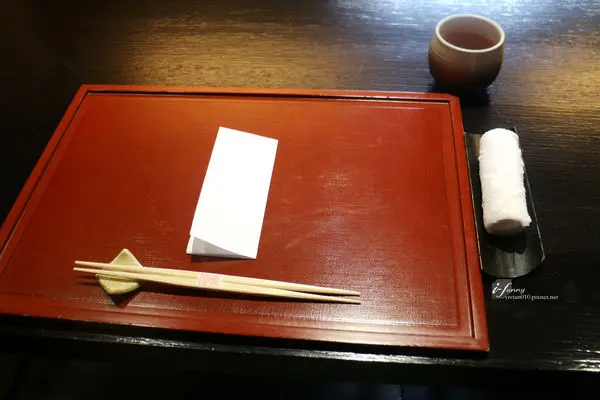 一坐下後,服務人員送上熱茶,是有著獨特溫和煙薰香味的京番茶。