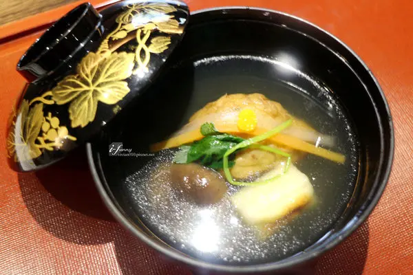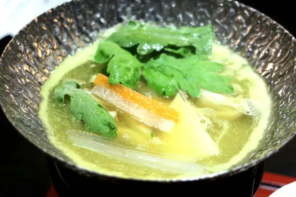 竹筒內為菠菜、柴魚高湯、柚子皮末,帶著柚子的清香,很高雅的菠菜。