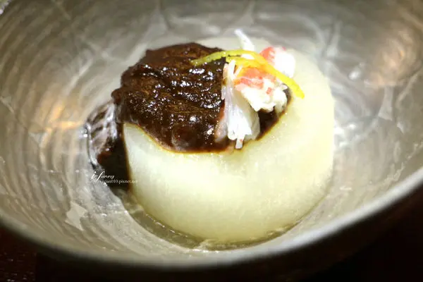 其上再配上松葉蟹肉及點綴日本柚子絲,風味更富層次。