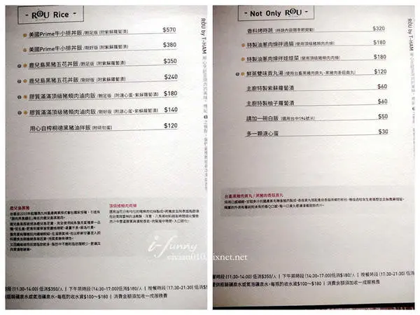 二樓菜單內容包括火腿類、沙拉類、魚類、豬肉香腸類、丼飯類等,價格120元起。