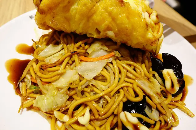 說穿了就是大阪燒炒麵的概念,上方還來了一層烘蛋。