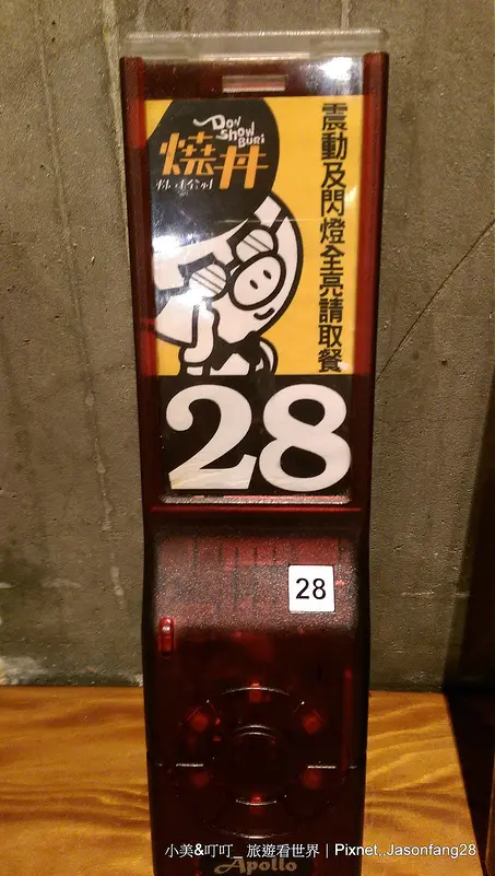 於是我們點了三個野狼燒豬丼,點好了就會送上這個!大家熟悉也不過了,震動再來取餐