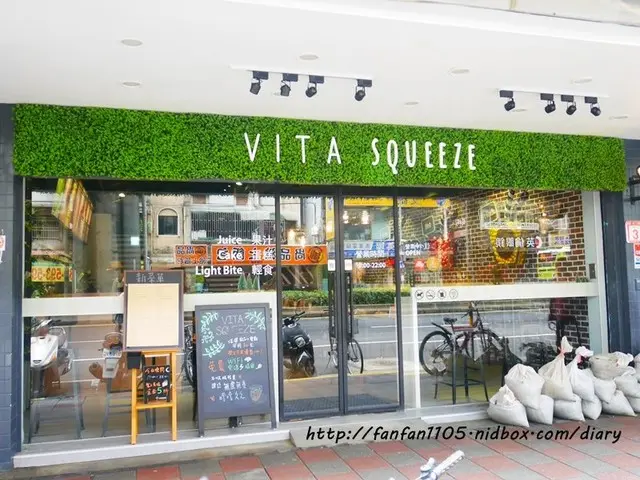 Vita Squeezzz 微時光提供、純果汁、冰沙、果昔、氣泡飲、茶、咖啡、可頌三明治、焗烤義大利麵、沙拉、潛艇堡、帕尼尼、點心等