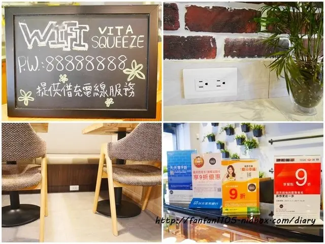 Vita Squeezzz 微時光,不收服務費、不限時,提供免費wifi,還貼心的有借充電線服務,即使忘了帶充電線也不怕