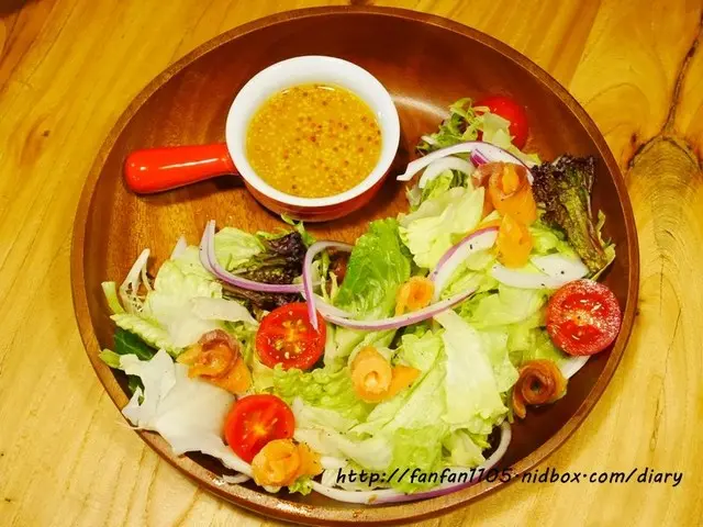 沙拉鮮脆,沾上店家特調的油醋醬,帶有果酸香氣,酸甜開胃,非常可口