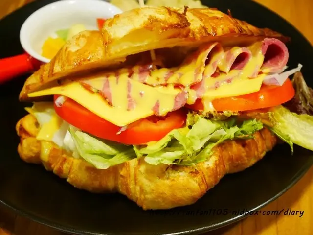 一口咬下,可頌的酥香,加上豐富的生菜與肉香、起司香,多層次的口感,讓人很滿足