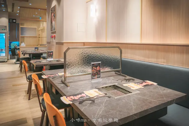 我吃過好幾間個人燒肉店,IKIGAI 燒肉專門店-內科店的環境真的非常速西,木質色調的裝潢跟大離石文的桌面給人很有質感的感覺,座位大多以4人隔間座位為主,也有一些開放的4人桌會用隔板分隔出雙人位喔