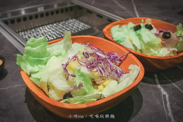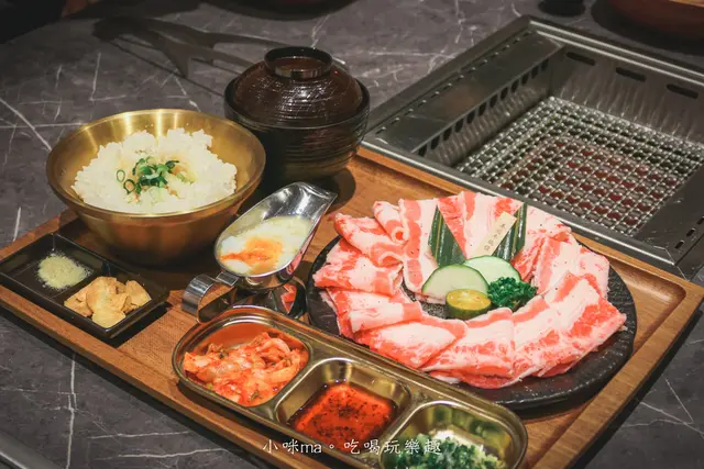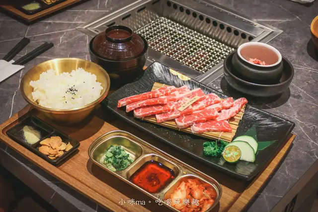 燒肉以套餐的形式呈現,最便宜280元就能開烤,包含肉品、沙拉、飲料、白飯、湯品,白飯跟湯品都能無限續加,肉食控的人也可以點滿腹大盛,大份量的肉品,吃起來更爽