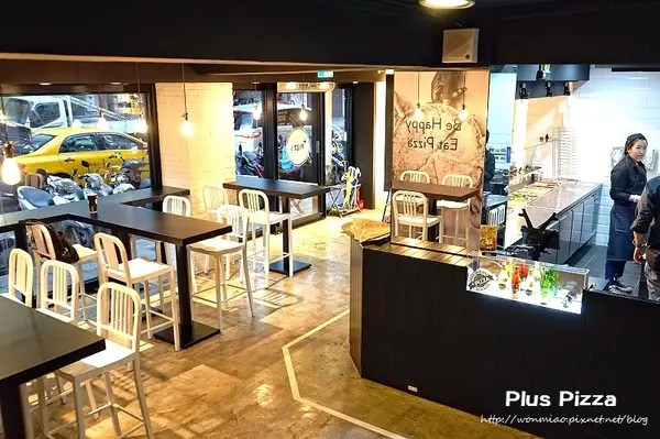 Plus Pizza 店面相當大,光座位就有2層樓,其中一樓的座位採高腳椅設計。