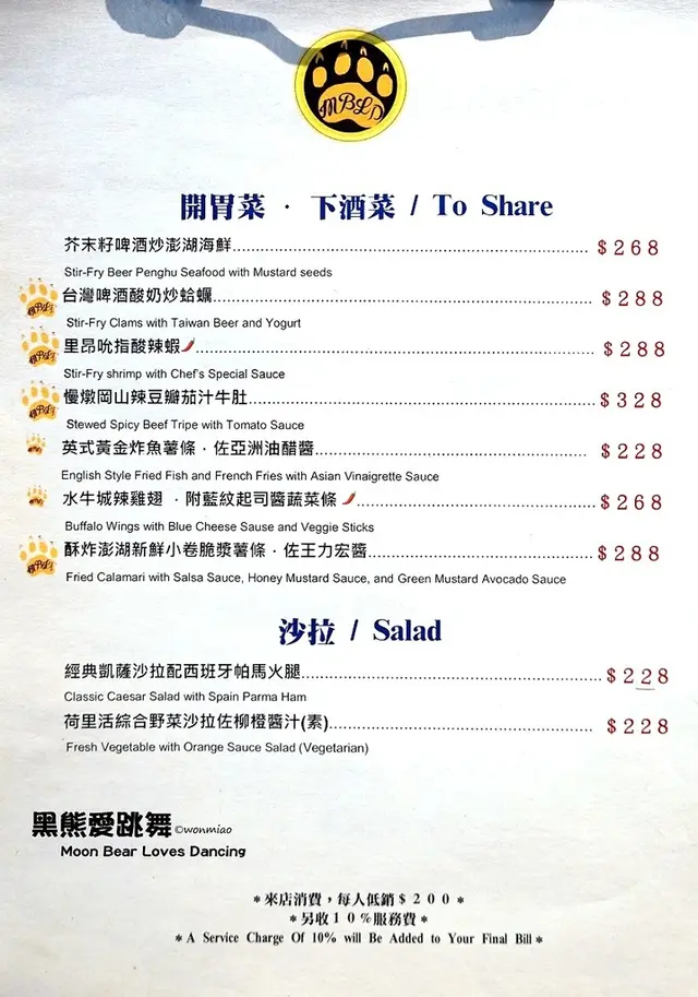 【六張犁新美式餐廳】 ✿ 黑熊愛跳舞 Moon Bear Loves Dancing ✿ 新式美國菜