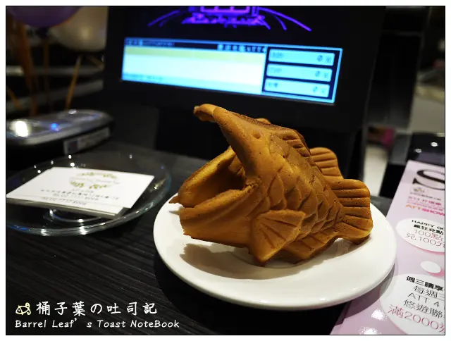 在櫃檯處這裡有 放著一隻鯛魚燒聖代的餅體可以參考,真的是鯛魚燒,不過張開了大嘴!(笑)