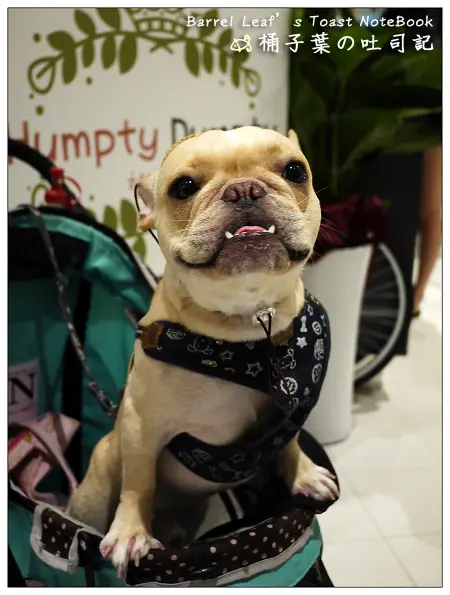 等待的時候~一旁出現了這隻好可愛、帶著帽子的狗狗,感覺年紀很小,有一點怕生,