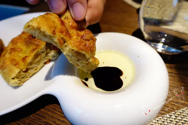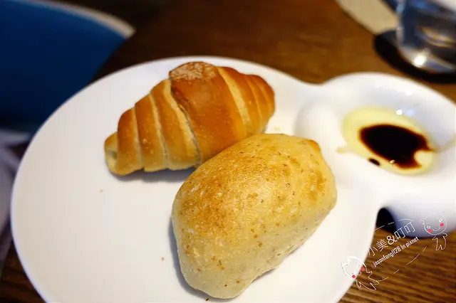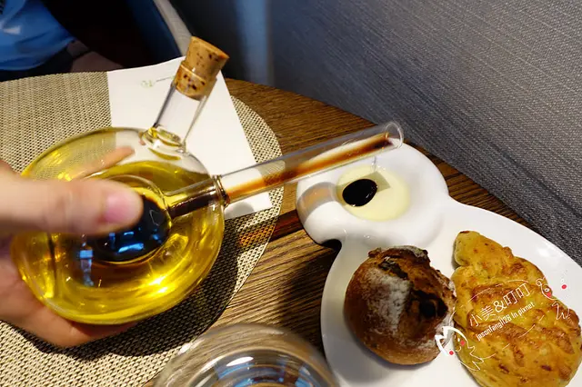 沾上麵包的口味會有點酸酸的,別有風味,而且這巴沙米可醋的容器也太有趣了吧