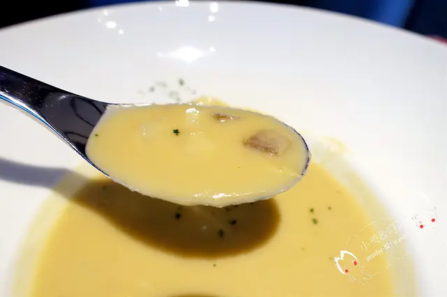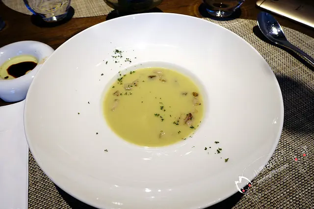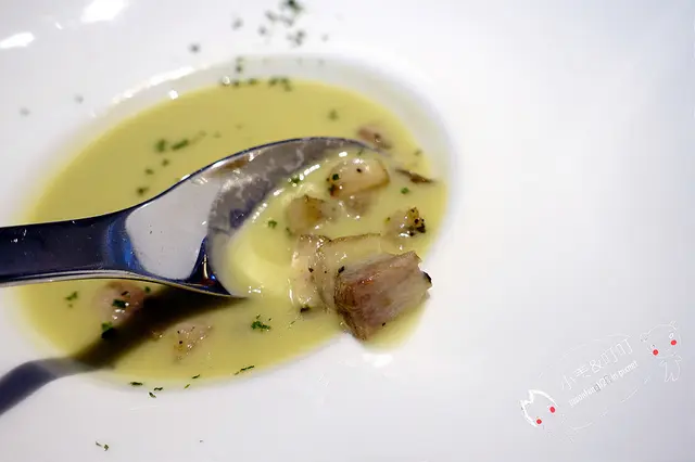 最簡單的綠竹筍把它轉化為西式湯品,喝起來清淡些!不過裡面有不少油封鴨肉嫩又鮮美!