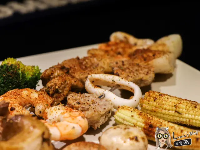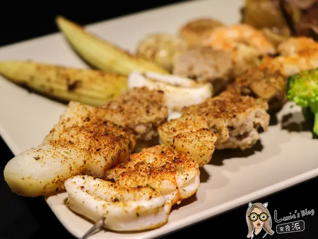 各種食材選用都不錯,海鮮吃起來也有保水度,不會乾乾的,但我覺得肉類的調味上有些平淡,香料粉只灑在表層,如果可以再入味一些會更好
