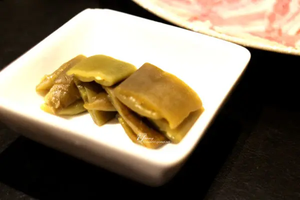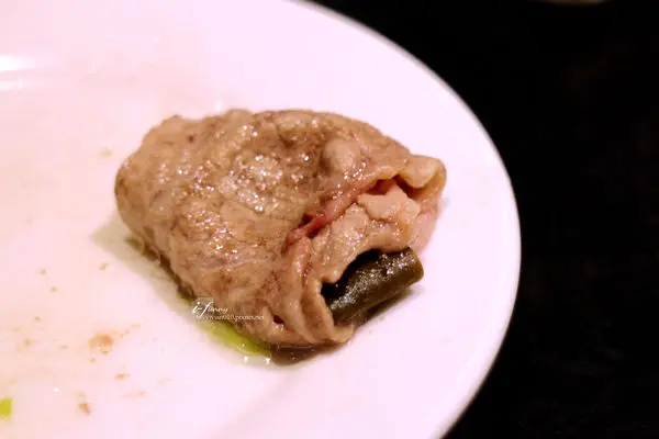 沒想到吃火鍋也能同時享有鐵板燒的樂趣,將煎好的肉片捲入剝皮辣椒一起入口,