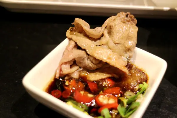 保留著肉汁的松阪豬,夾著已蒸軟的葸絲,軟中帶脆,真是好吃!