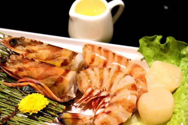這次的雙人套餐內含大明蝦、干貝、鱸魚、蛤蜊、安格斯黑牛、白豆蔻酵母豬,