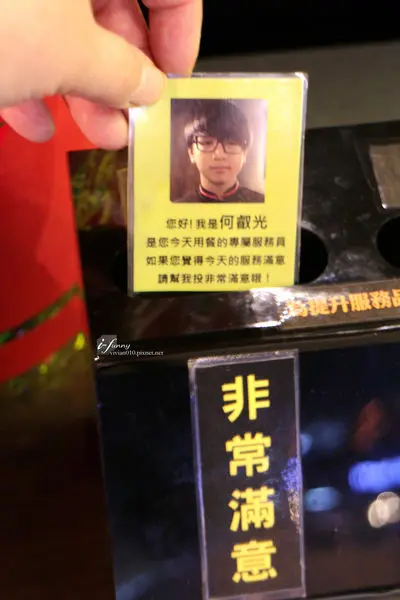 這桌上的立牌還兼具服務鈴的功能,但這天服務人員相當週到,都會主動協助。