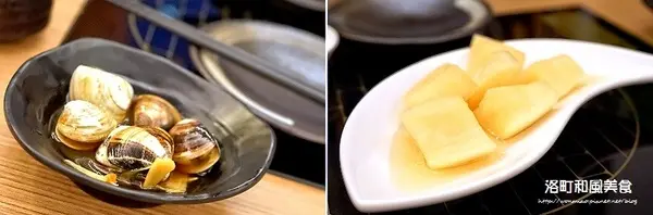 先送上招待的小菜,是醃的鹹蛤蜊,一般大多是鹹蜆仔居多,