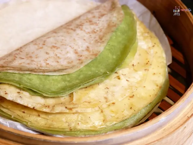 他們用的是荷葉餅,餅皮加入不同的食材做出不同的口味,不只好吃也很好看。
