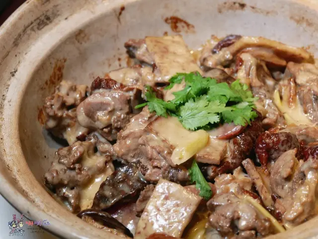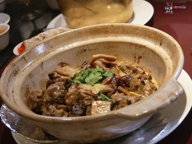 雖然台式烤鴨的做法也有炒鴨架,但能把鴨架炒的這麼允指回味倒是第一次吃到,稍微炸過口感很綿密的芋頭和烤鴨再加上粵亮有名的臘腸,雖然啃起來很麻煩,還是忍不住會再伸筷子夾幾塊來吃。這如果有電視,邊看邊配就更好了。