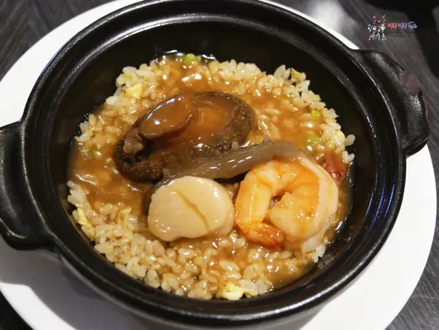 福建炒飯是溼式炒飯,把雞湯做成勾芡的湯汁淋在炒飯上,不要以為這樣炒飯就會像燴飯一樣,並沒有喔!炒飯還是粒粒分明,本來我也以為是燴飯正在納悶呢!但一入口就發現還真的是炒飯耶!味道非常的鮮香,讓人忍不住一口又一口,還有讓上面浮誇的”配料”,一整個就是鮮呀!