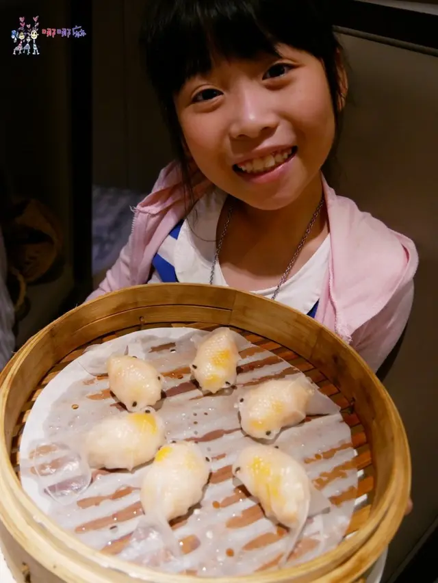 六隻金魚在蒸籠裡面對面,彷彿聚在一起聊天一樣,不知道在說什麼悄悄話,連身上的魚鱗都維妙維肖,真的佩服師傅的巧手。