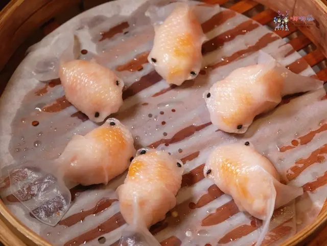剛剛的人蔘已經很可愛了,接著又出來一道游水金魚餃,也太漂亮了吧!讓大家頓時驚呼,怎麼有這麼厲害的創意。