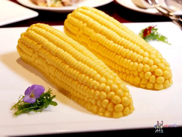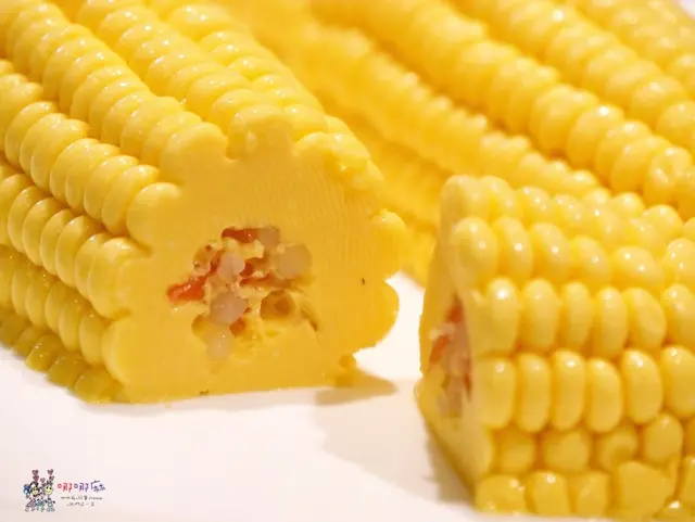 這個玉米乍一看誰會覺得他是香港經典甜品楊枝甘露啦!看起來就像剛剛從水裡撈上來的水煮玉米,如果不是認真去看,我還想說這麼多經典菜色,怎麼會突然冒出水煮玉米來?而且這個玉米好有彈性,用餐具去敲打他,還會ㄉㄨㄞ ㄉㄨㄞ 的抖動,看起來好可愛,非常的Q彈動人。甫一入口頓時驚覺,真的是楊枝甘露耶!就是那個芒果和柚子混合的味道,只是我覺得有點可惜的是,這樣的做法讓他偏乾了一點,畢竟對楊枝甘露的期待就是一道甜湯,做成有點像是奶酪和慕斯的混合口感,離期待值有那麼一點落差。