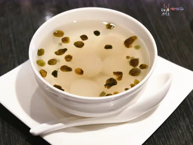 裡面有一顆顆挖成球狀的雪梨,已經燉的軟爛,裡面還加入燕窩。上面像海藻一樣的漂浮物,竟然是要價不斐的葛仙米,富含微量元素、胺基酸,別名又叫上帝的眼淚,口感軟軟脆脆的,很特別。仙翁冰糖燉雪梨的味道香甜溫和,是非常傳統的滋補降火湯品,而且經過冰鎮後冰冰涼涼的,在這個天氣喝是最好。