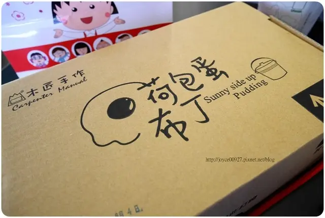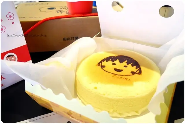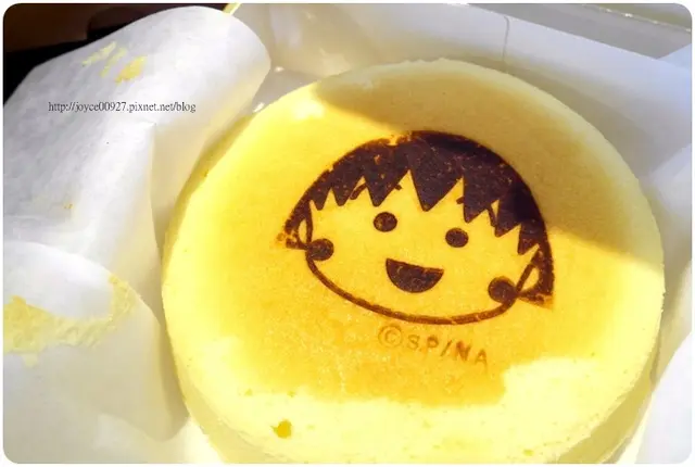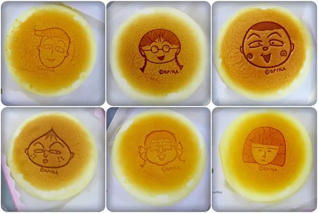 烙有小丸子大頭的現烤起司蛋糕搭配兩個荷包蛋布丁享有優惠價