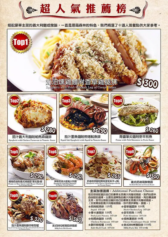 蘑菇森林義大利麵坊。MENU
