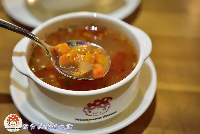 當日的主廚湯品是番茄清湯,味道普通,但湯裡的蔬食料還蠻多滴