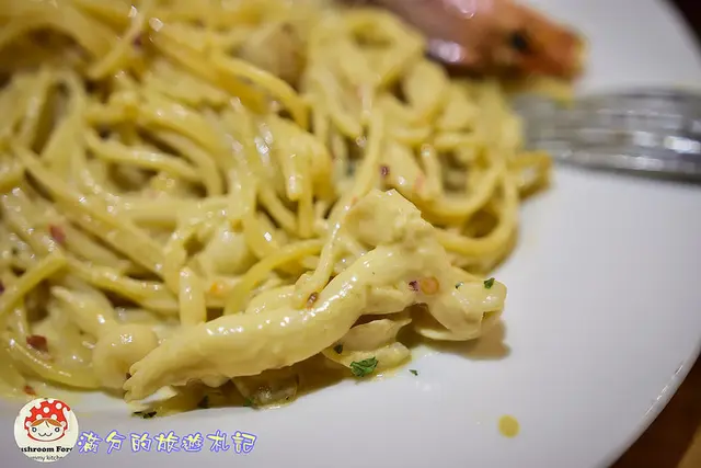 奶油口味的義大利麵,醬汁甜味濃郁,味道也還不賴
